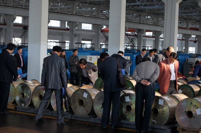 11月10日,安徽省電線電纜商會(huì)參觀團(tuán)來(lái)到江潤(rùn)銅業(yè)。在公司營(yíng)銷部經(jīng)理陪同下,商會(huì)理事們參觀了銅連鑄連軋車間、復(fù)合銅線車間、銅絞線車間,深入了解到了高品質(zhì)的銅加工工藝。此次安徽省電線電纜商會(huì)赴電纜城考察,是為發(fā)展本地線纜事業(yè)引進(jìn)先進(jìn)技術(shù)。